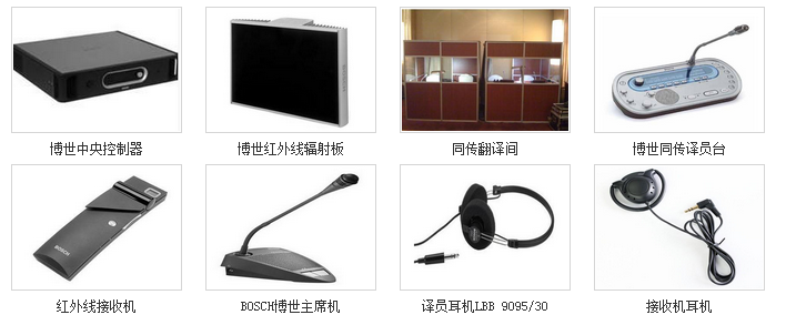 同传设备由同传中央控制器、红外发射主机、红外发射板、译员机、同传翻译间、同传耳机(代表接收单元)等构成。译员机和翻译间的个数将根据会议语言数来定。同传耳机(代表接收单元)根据参会人数来定。